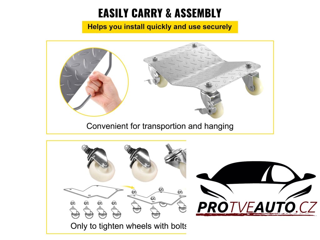 RŮZNÉ FUNKCE - Podvozek na kola je ideální volbou pro garáže, autosalony, dílny atd. Je také použitelný pro restaurování osobních automobilů, nákladních automobilů, přívěsů, traktorů, motocyklů, sekaček na trávu, nábytku a dalšího vybavení.